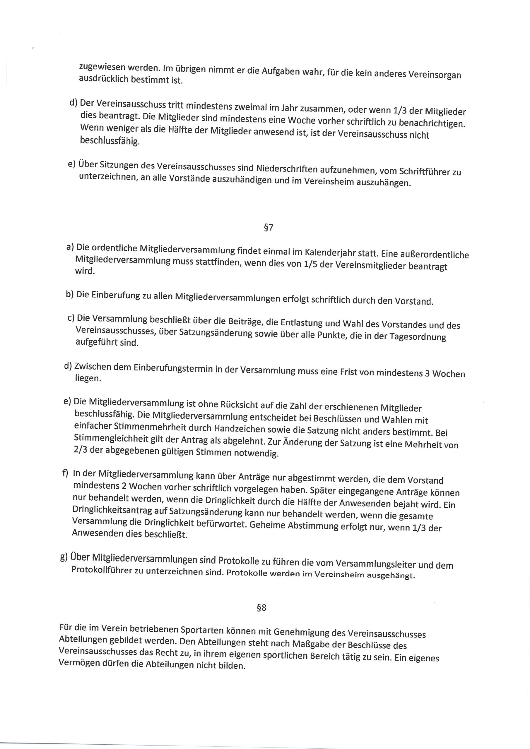 Die Satzung des PBC Ilmmünster